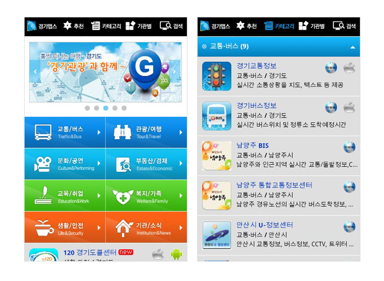 경기도에 대한 궁금증 및 관광가이드 등 경기도 전방에 관해 알 수있는 모바일 서비스